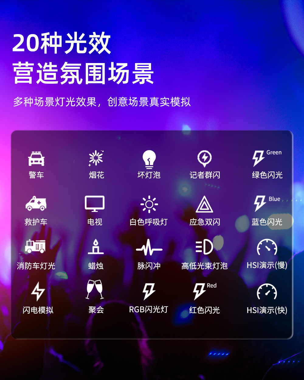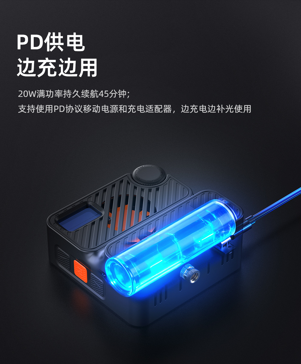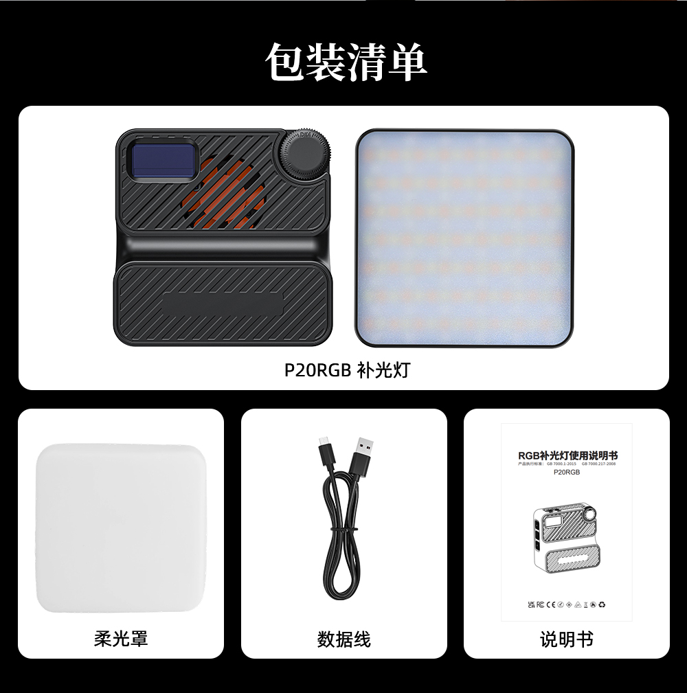 20W,36000彩色RGB便携口袋灯,内置电池,2500-9000K色温,20种场景模拟,静音风扇散热